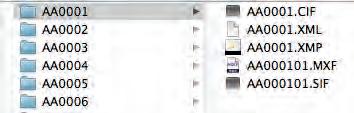 Så här ser ett MXF-klipp ut. Det består av filer som innehåller olika sorters information. Det är viktigt att komma ihåg att all a filer ska importeras in i projektet.