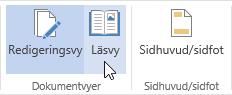 För att se hur dokumentet kommer att se ut vid en utskrift visar du fliken Visa och klickar på Läsvy i gruppen Dokumentvyer.