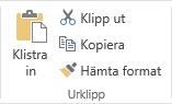 2 Visa fliken Start och klicka på Klipp ut för att flytta texten eller på Kopiera för att kopiera texten.