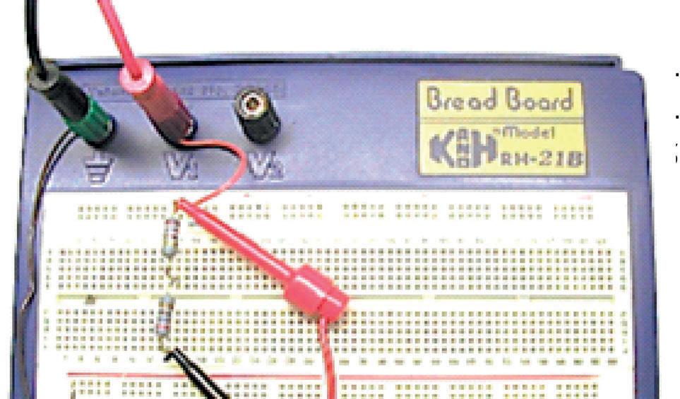 Experimentkretsarna kopplas med lösa komponenter på en kopplingsplatta (Bread Board) för lödfria anslutningar.