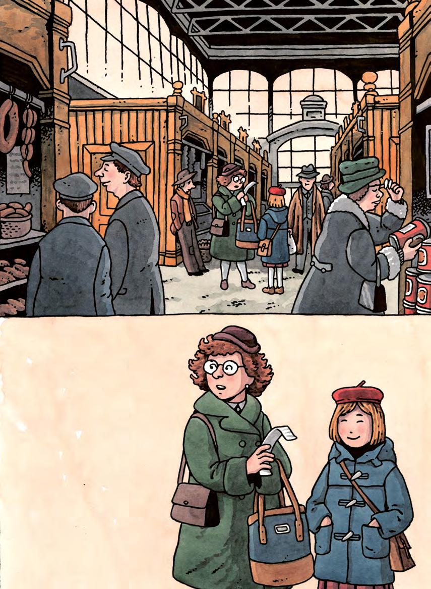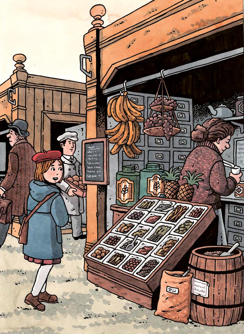 Så kom de innanför dörrarna. Tusentals lukter från de olika bodarna letade sig in i näsan, men det tog en stund innan Klaras ögon vant sig vid dunklet. Mamma drog fram en inköpslista ur handväskan.