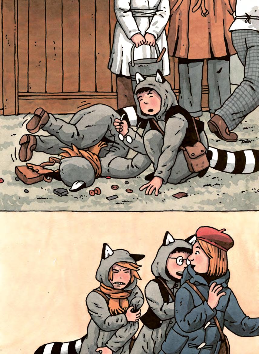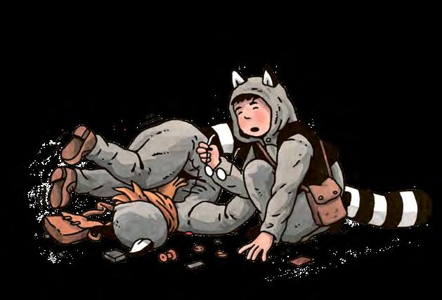 ”Jag heter Perri och han är Mack. Vi hör till Tvättbjörnarnas gäng.” ”Är det därför ni klätt ut er? Får ni se ut så där för era mammor?”