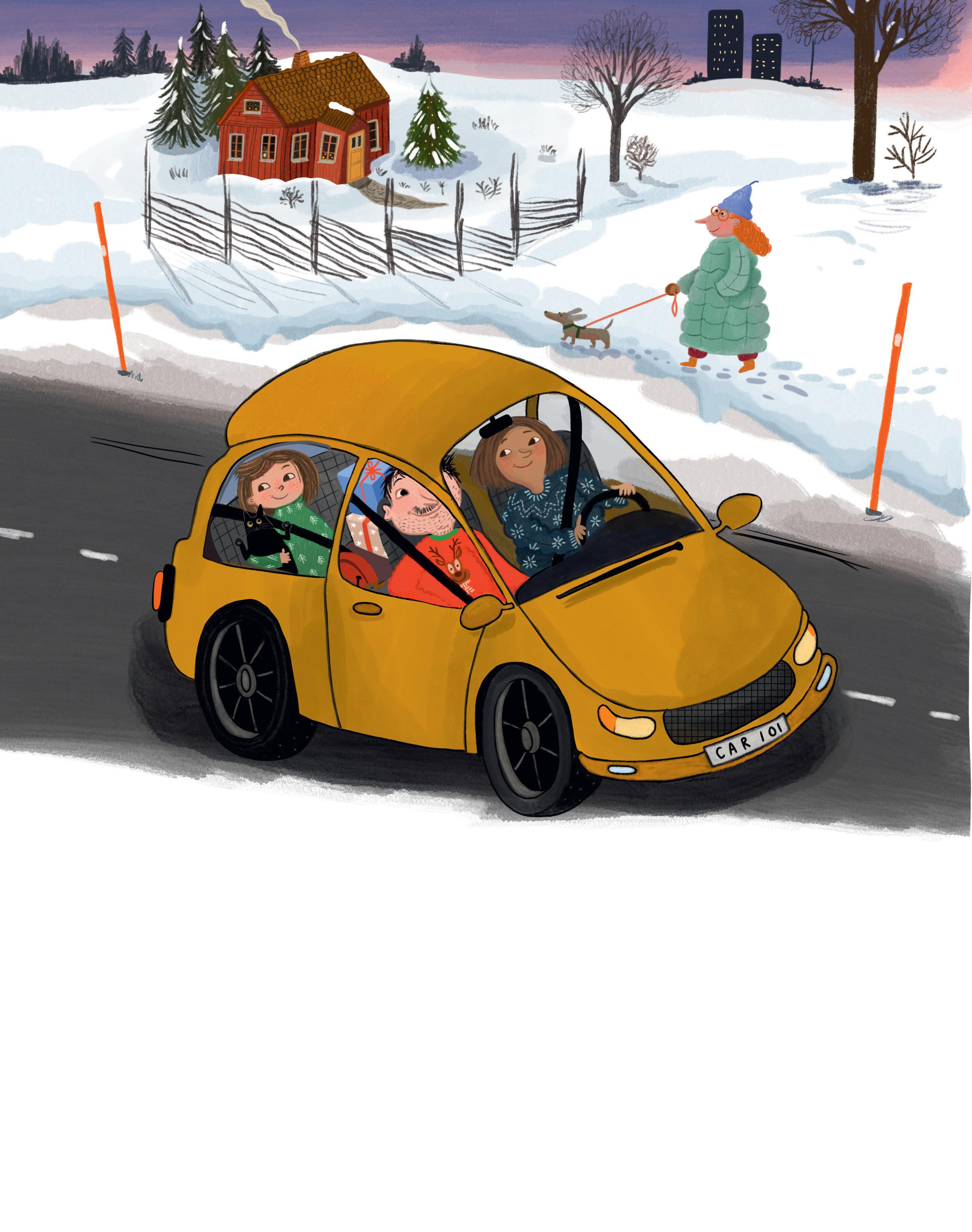 Det är dagen före julafton och Mira, mamma och pappa är på väg till sin kompis Terry.