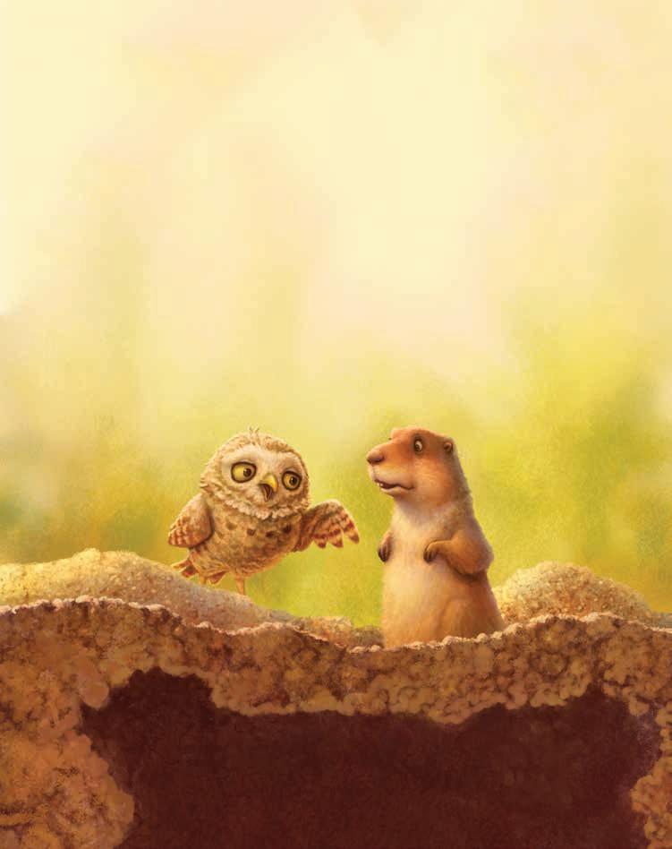 Puff och Pip bodde i en smutsig hÄla ute pÄ ett fÀlt. Puff var en uggla som mest satt inne i hÄlan. Om han inte var hungrig förstÄs. Pip var en prÀriehund som grÀvde gÄngar.