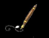 Plötsligt ser han en hård och kantig sak.