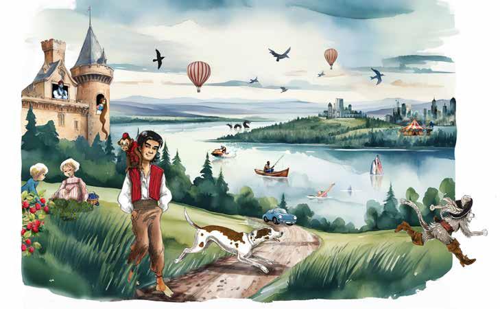 F Vad ser personerna i slottet när de tittar ner? Skriv och berätta.