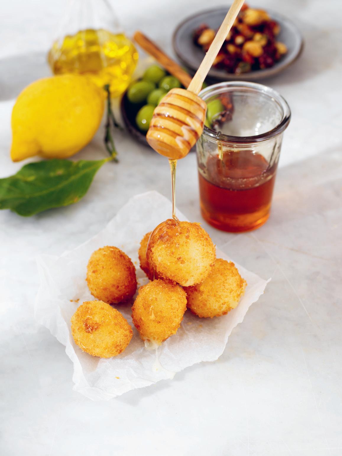 Ringla honung över de nyfriterade getostbollarna och servera.