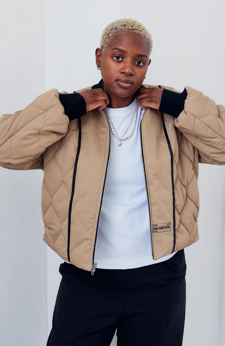 Modellen Anna (lockigt hår) är storlek 36 och 176 cm lång.