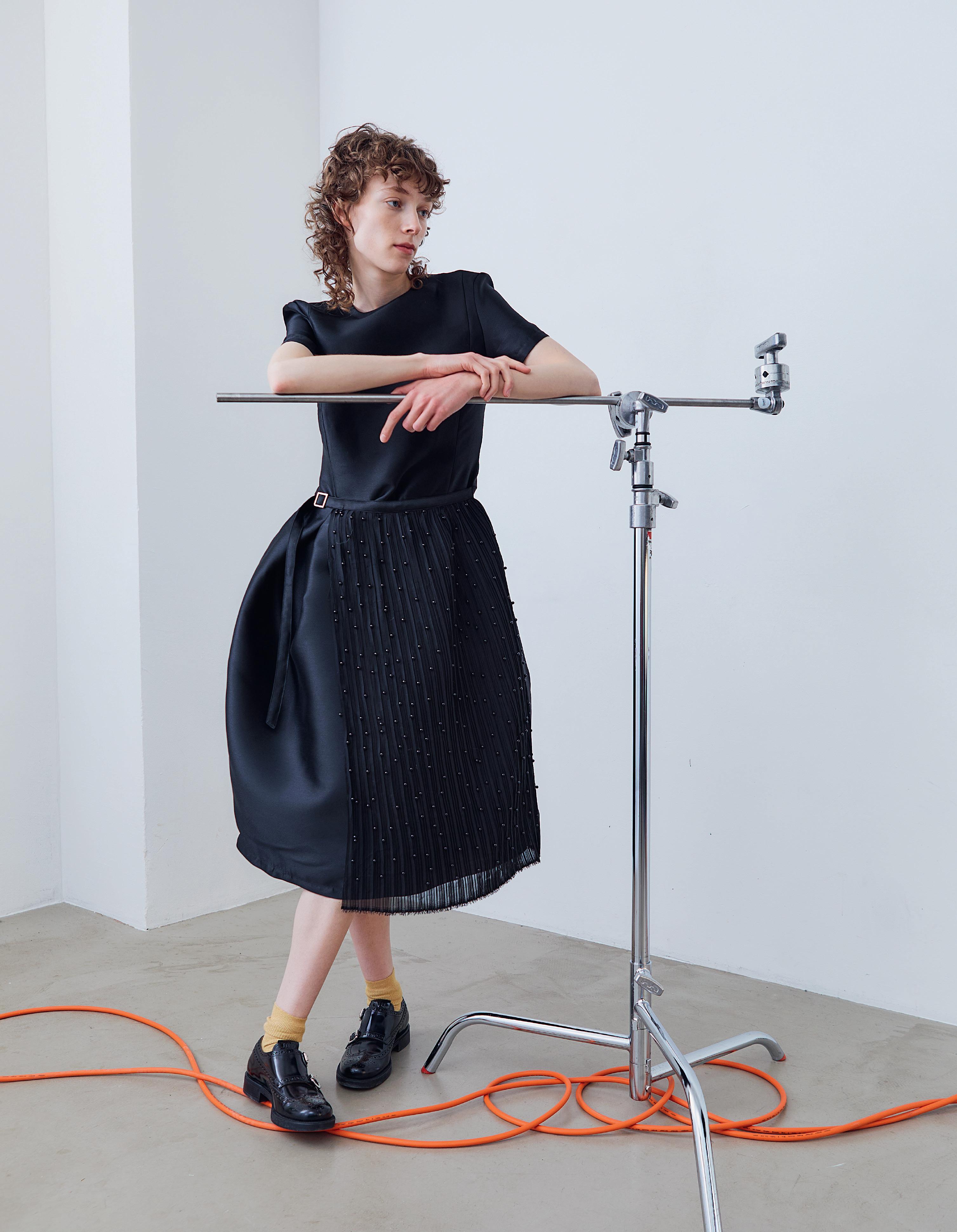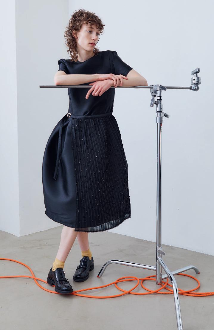 Under en lång tid har överdimensionerade plagg varit tongivande, men nu börjar det kännas viktigt att låta en del plagg vara mer kroppsnära. Därför har den här klänningen fått en vackert skuren överdel som följer kroppen lite mer och sedan en kjol med riktigt mycket vidd och djupa veck.
