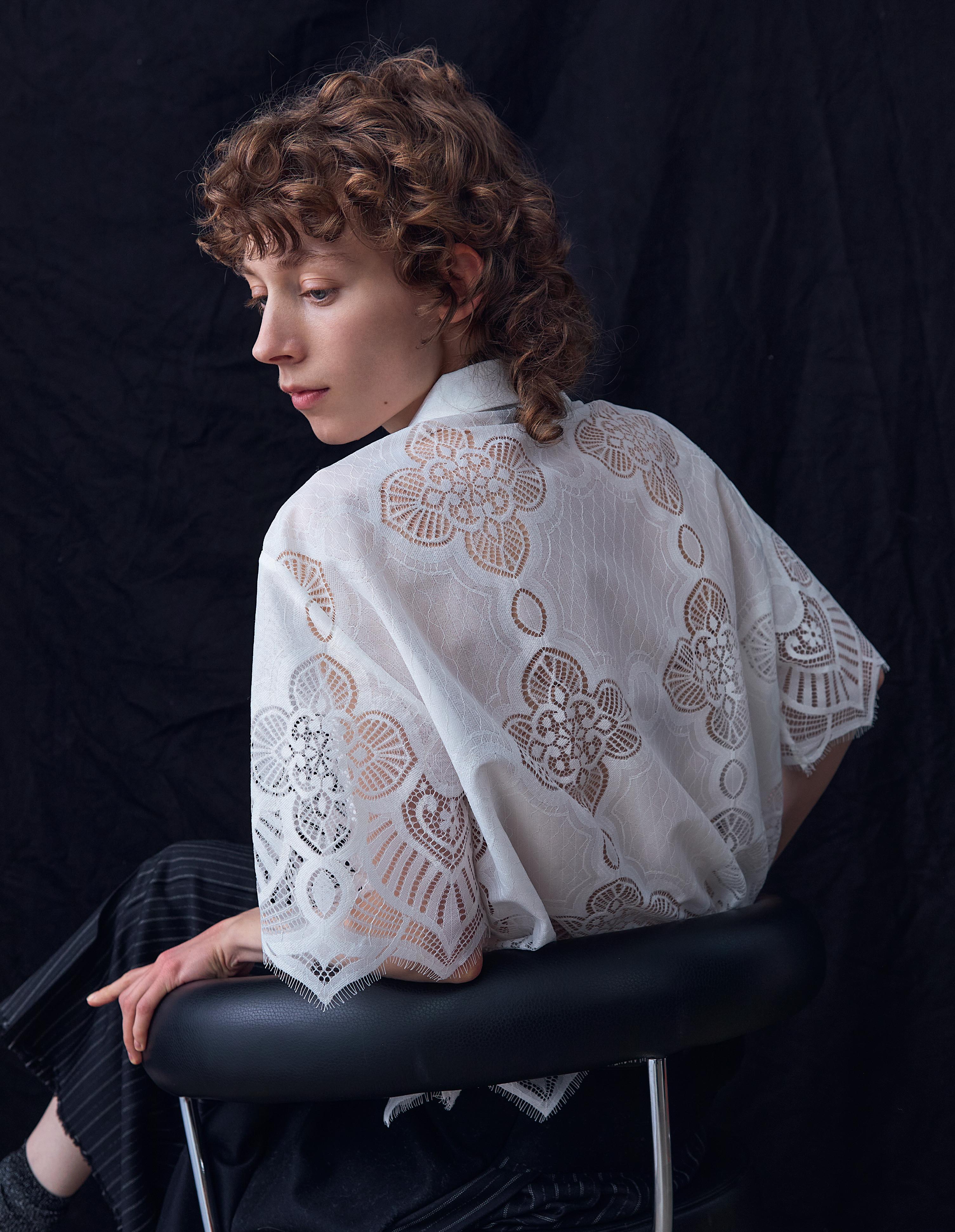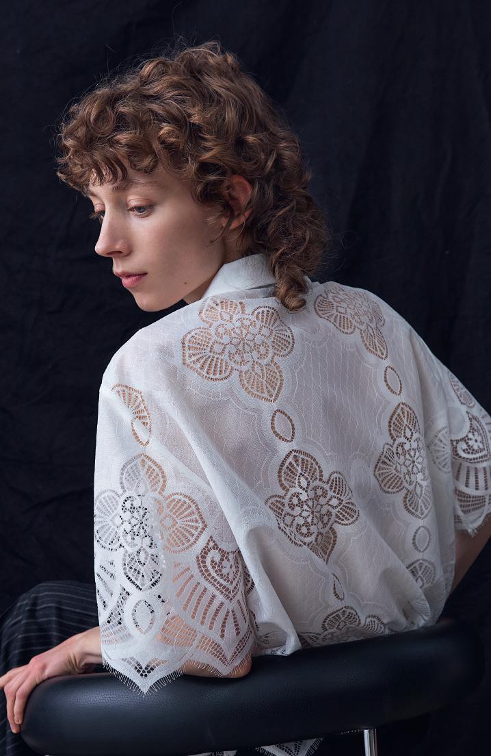 Det är bra att ha ett nyckelplagg som är enkelt i sin design. Här passar en kortärmad skjortmodell utan bystinsnitt perfekt in i modebilden. Kragen ligger platt och framkanten bildar ett kragslag. Skjortan är utan ok i ryggen och har knäppning i framkant.