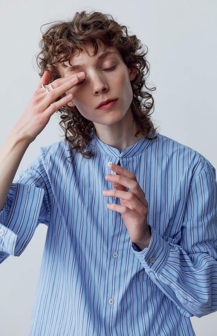 Min design är ofta rak och passformen löst sittande på kroppen. För att skapa en unisexstil finns till exempel inga bystinsnitt på plaggen.