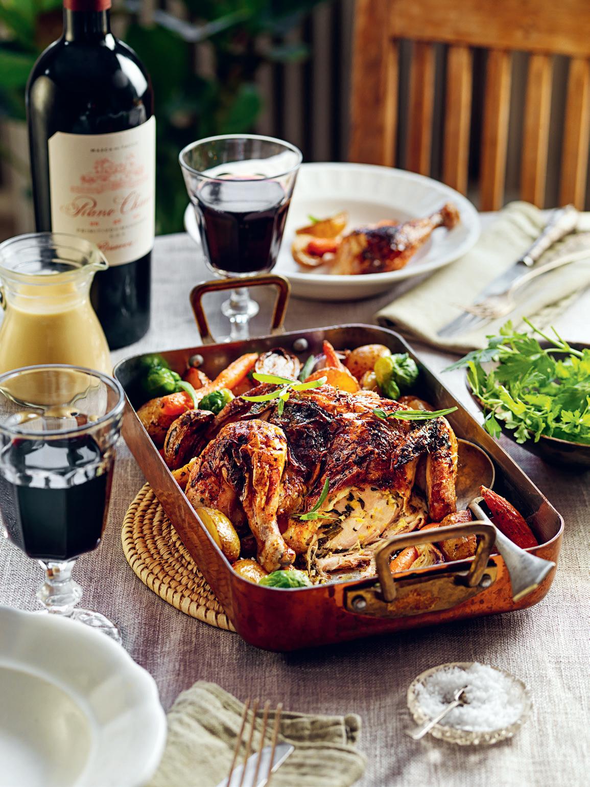 Helrostad kyckling i ugn med örtkryddade rotfrukter och gräddsås 61