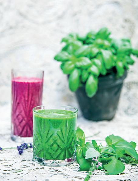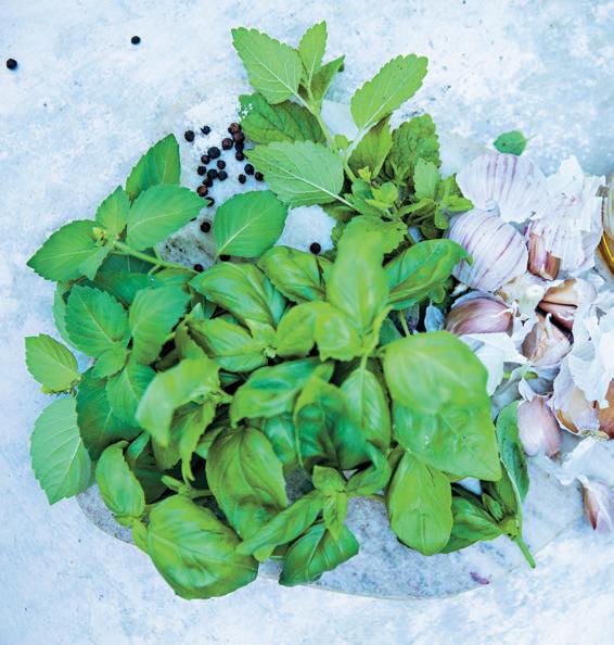 (s. 157) och dosera 2–4 ml i lite vatten två gånger per dag. Prova gärna cheering powder (s. 180). Underbar även i bad och fotbad (s. 159). Och så är basilikan så klart fantastiskt god i maten, bjud till exempel på en pistou eller pesto (s. 179).