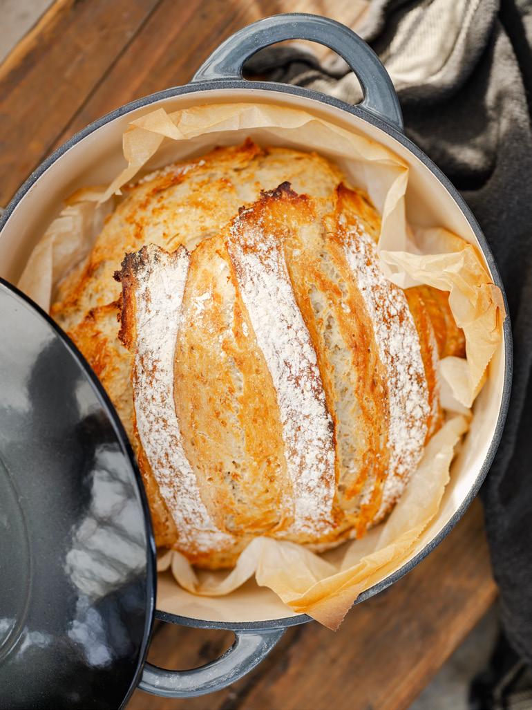 9. Lyft upp brödet ur grytan och låt det svalna på galler utan bakduk.