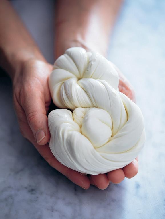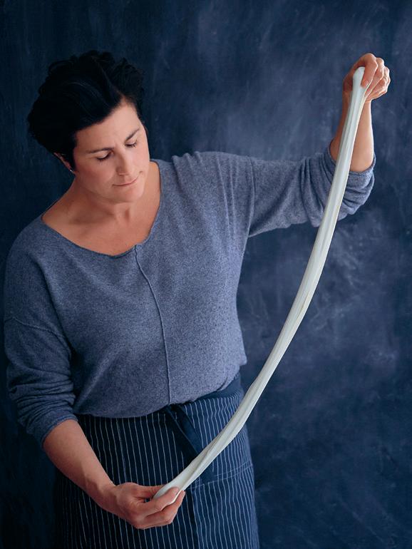 glansig. Försök att jobba så mycket som möjligt i den varma vätskan. Eller doppa ner osten då och då om den blir för hård och går sönder i stället för att dras ut. Men överarbeta inte osten så att den blir för seg och hård.