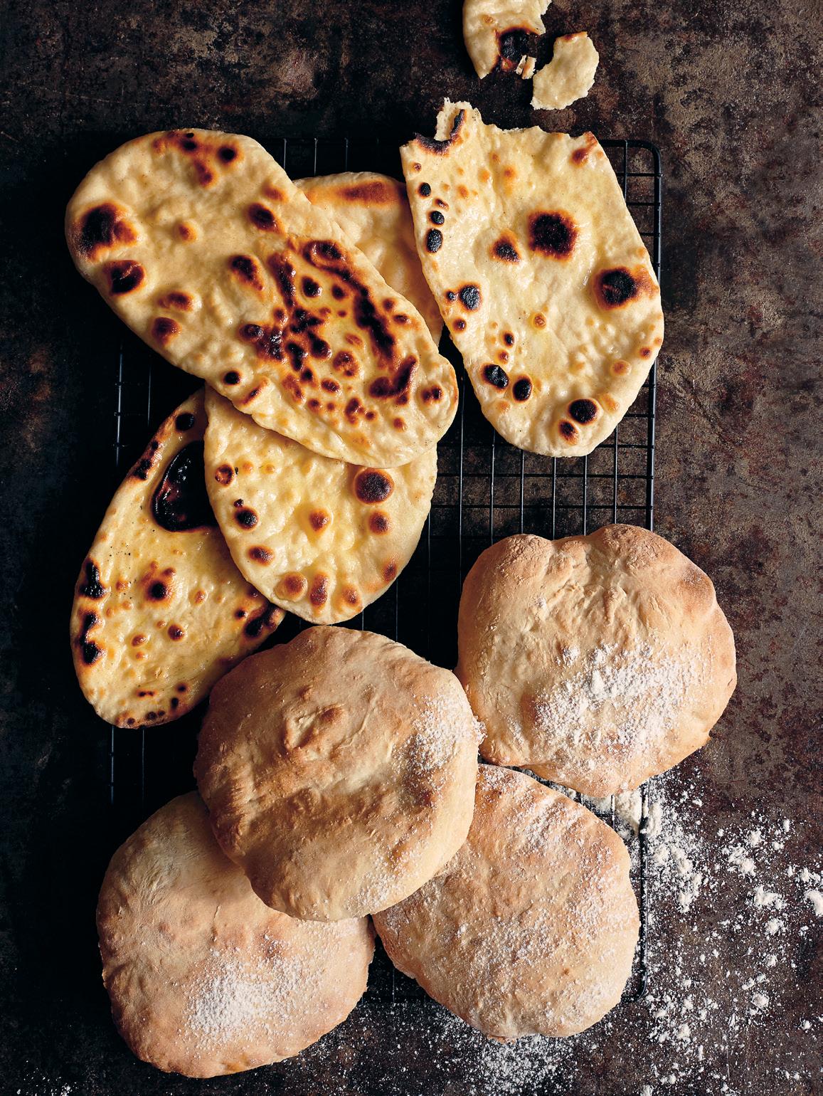 Blanda mjöl, vatten och jäst i en bunke till en poolish (en lösare fördeg). Täck med plastfolie och låt stå i rumstemperatur i 12 – 14 timmar. Blanda poolishen med mjöl, vatten och jäst och knåda degen i maskin i 10 minuter eller för hand i 20 minuter. Tillsätt saltet och knåda i ytterligare 5 minuter. Låt degen vila i bunken i 30 minuter. Dela degen i fyra bitar. Platta till varje bit, vik in ena långsidan mot mitten och tryck till med handflatan. Vik över den andra långsidan och tryck till ytterligare en gång. Låt vila i 10 minuter.
