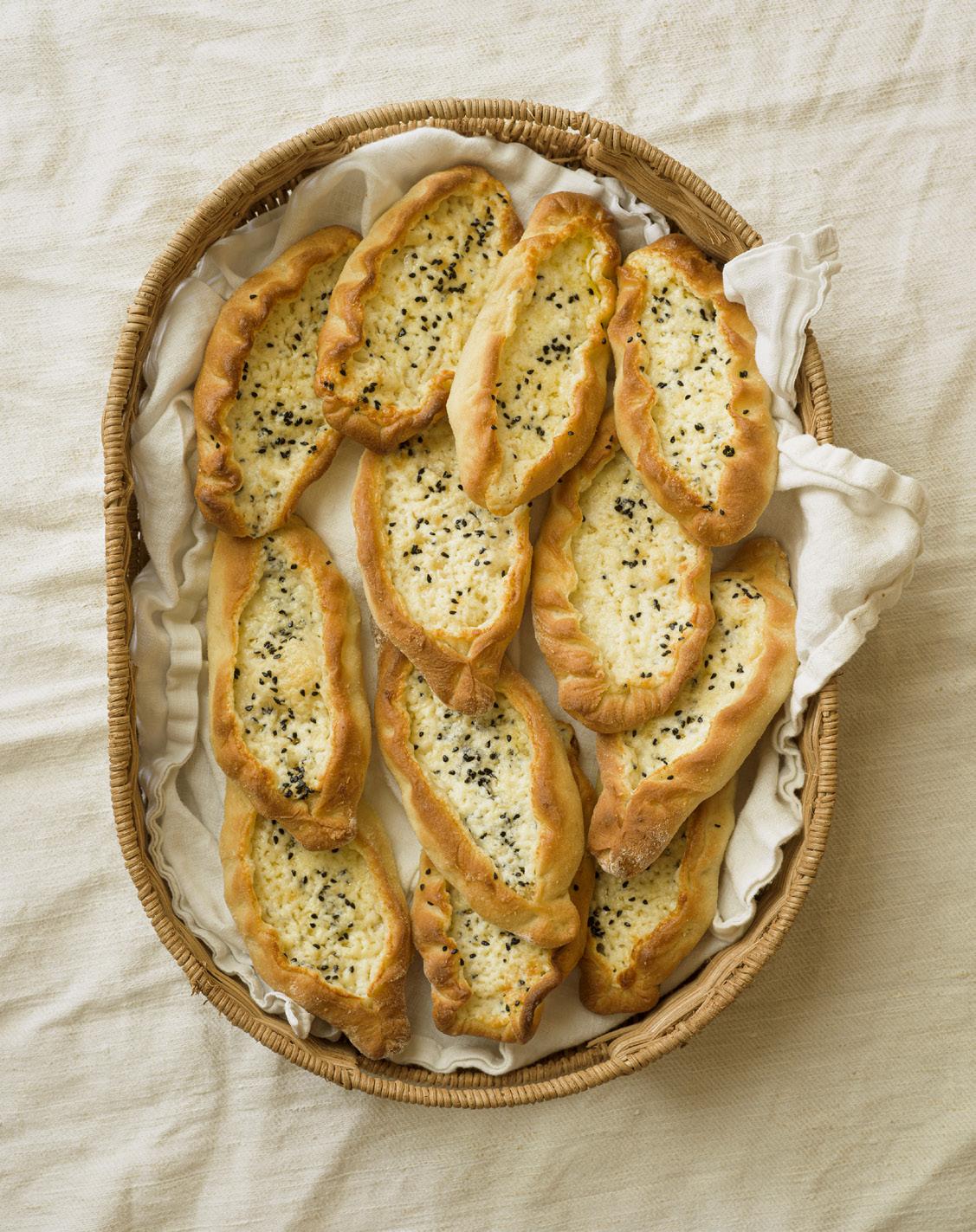 Det här är min libanesiska svärmors recept, ett kärt familjerecept som har gått i arv i generationer. Fatayer, mjuka, nybakade piroger fyllda med vitost och mozzarella, passar lika bra till middagen som på buffén – där de nästan alltid försvinner först från fatet. Nigellafrön, eller svartkummin som växten heter (trots att den inte alls ska förväxlas med vare sig kummin eller spiskummin), används i matlagning i Indien, Mellanöstern och länderna på Balkan. Om du inte får tag på nigellafrön går det jättebra att göra fatayer utan dem.