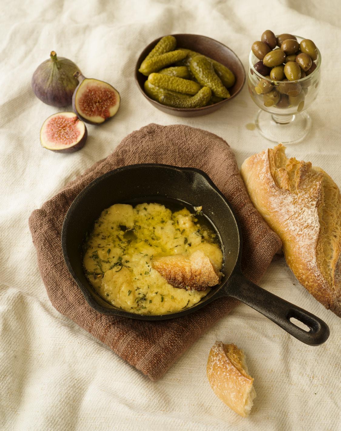 Den här rätten gör jag när jag vill låta osten ta all plats. Jag skjutsar in en rejäl bit gruyère i ugnen och väntar tills den börjar bubbla och det doftar varmt nötigt i hela köket. Det här är ren ostglädje, enkelt och opretentiöst med all fokus på smaken. Servera gärna med bröd eller kex och tillsammans med exempelvis cornichons, oliver och färska fikon.