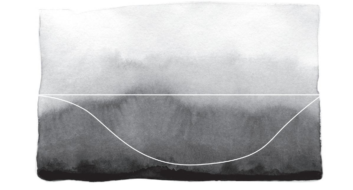 Linjen i mitten av bilden är en normal nivå. Där är man varken lycklig eller olycklig. Den vågiga linjen visar hur de flesta människor pendlar upp och ner mellan olika känslor.