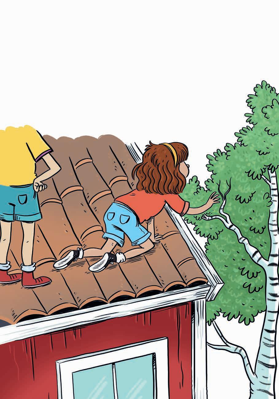 – Undrar hur långt bort man ser där uppifrån taket … Vågar du klättra upp? frågar Lava.