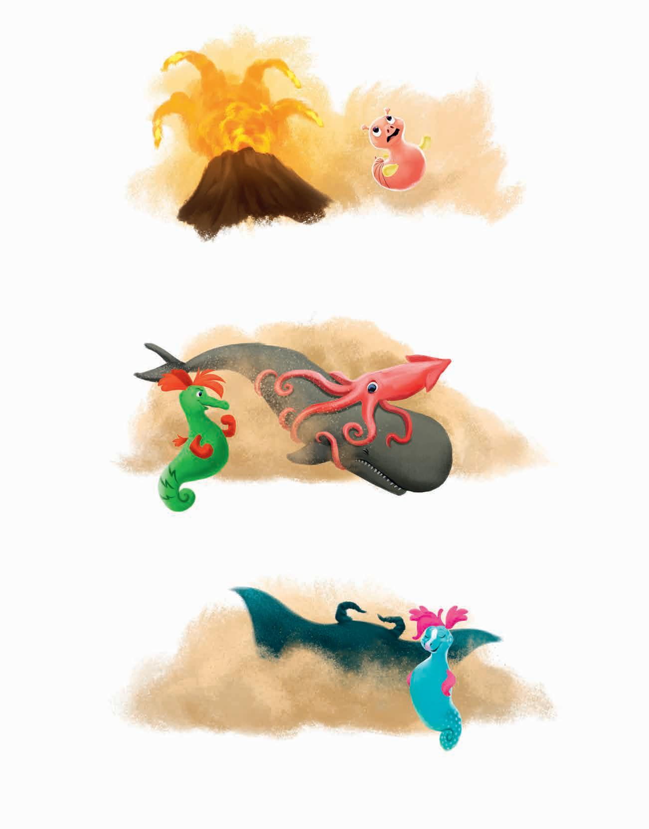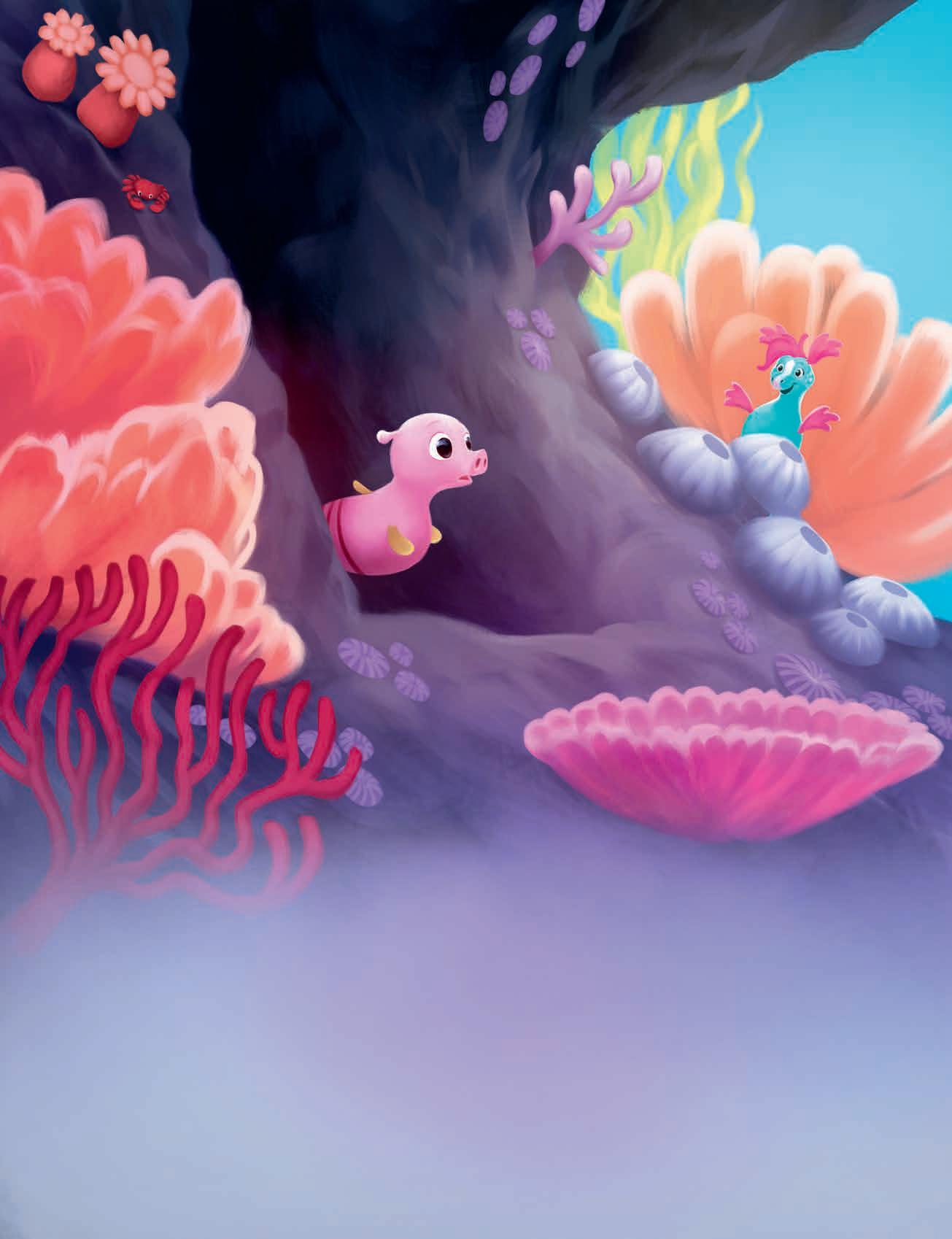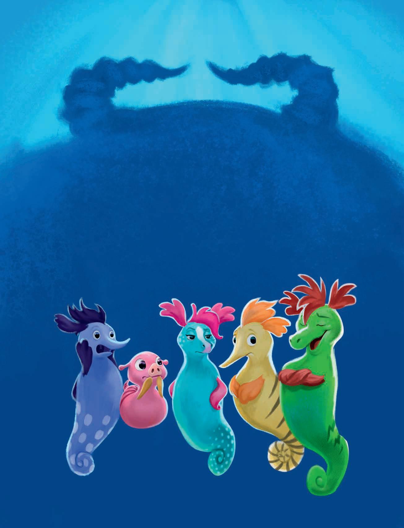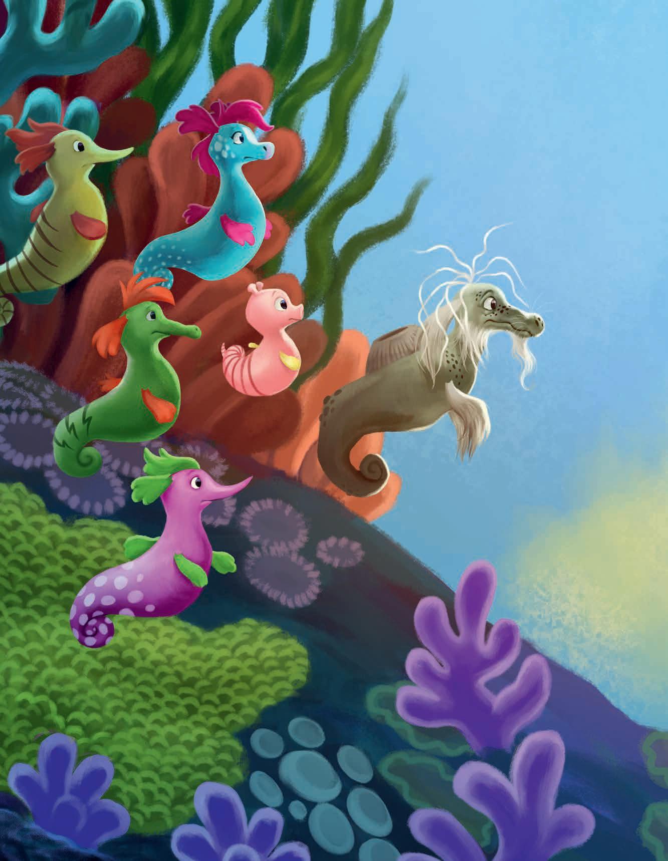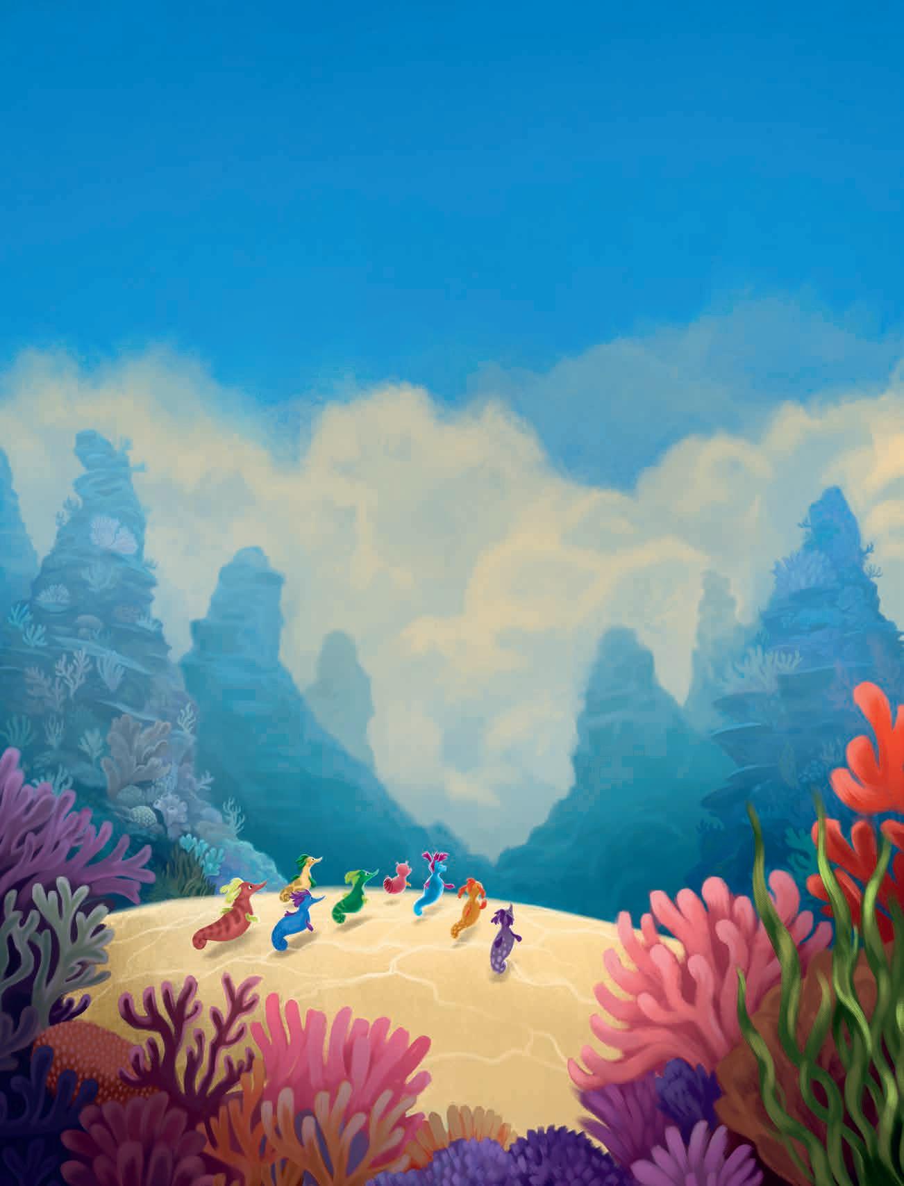 De andra sjöhästarna vid korallrevet hade också fått syn på undervattensmolnet, och snart bubblade varenda en om vad det kunde vara. Ingen vågade förstås ge sig iväg för att undersöka saken – det skulle vara alldeles för farligt med alla stora och hungriga fiskar där ute.