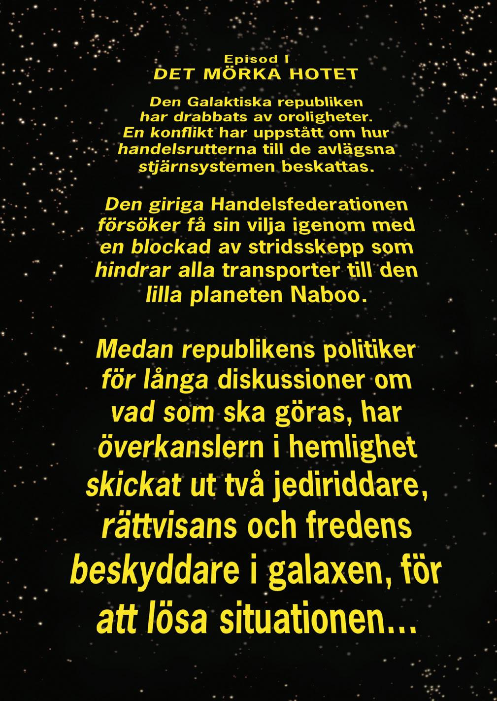 Originalets titel: Star Wars: The Prequel Trilogy Graphic Novel Svensk översättning: Marcus Olsson