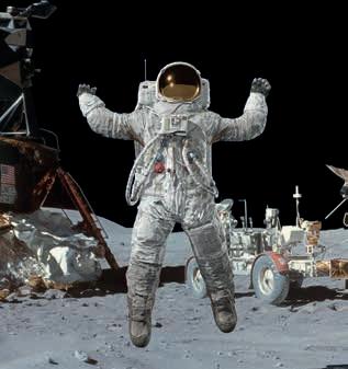 Månens svaga gravitation gör att en astronaut kan hoppa sex gånger så högt på månen som på jorden.