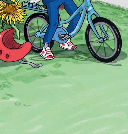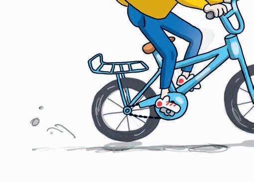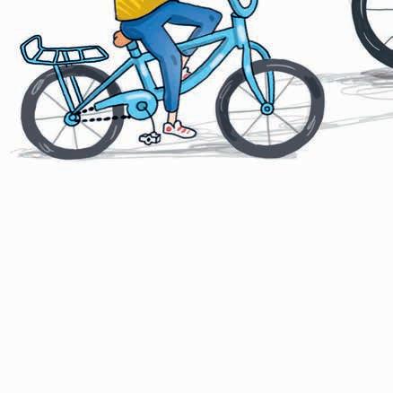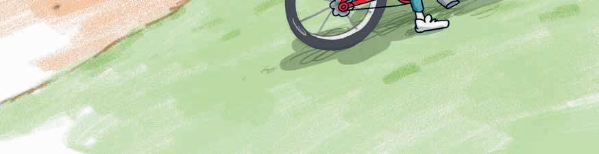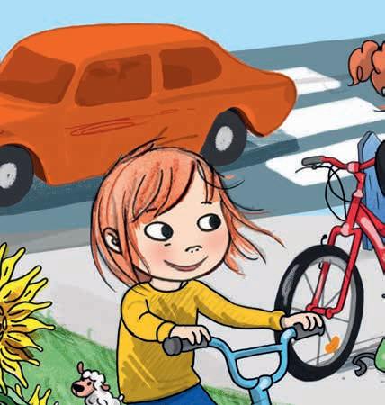 är faktiskt fusk att tjuvstarta. Dessutom får de ju inte cykla nära bilarna på parkeringen. Trots det hoppar hon upp på sadeln och jagar efter.