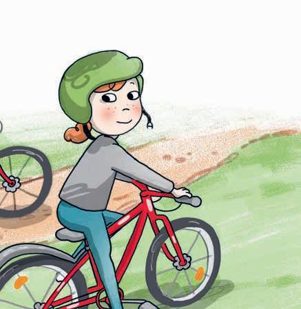 Saga är besviken. Hon vill inte komma sist. Hon tänker minsann visa kusinerna att hon också är snabb på cykeln.