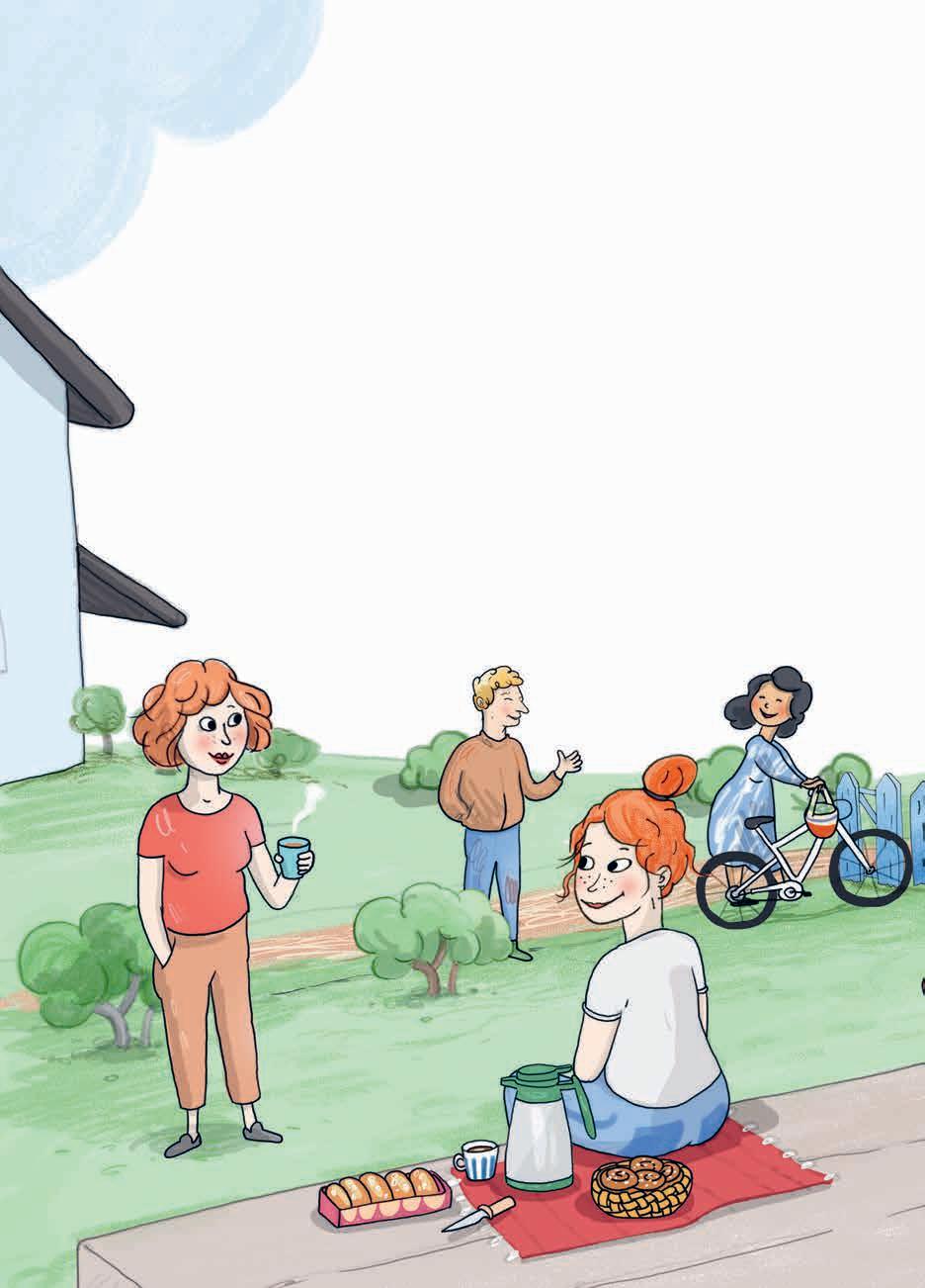 – Saga, du kan ju visa Albin och Alba vad du tycker är kul här i området, föreslår Sagas mamma. Så säger vi till när det är dags att äta mat.
