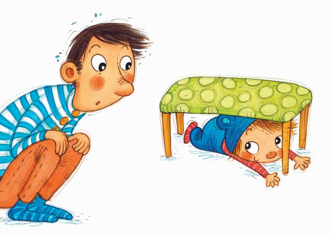 När pappa vill att de ska gå ut, leker Dam-Dam tittut.