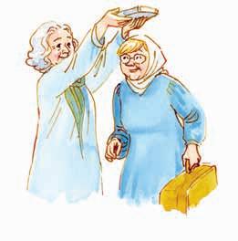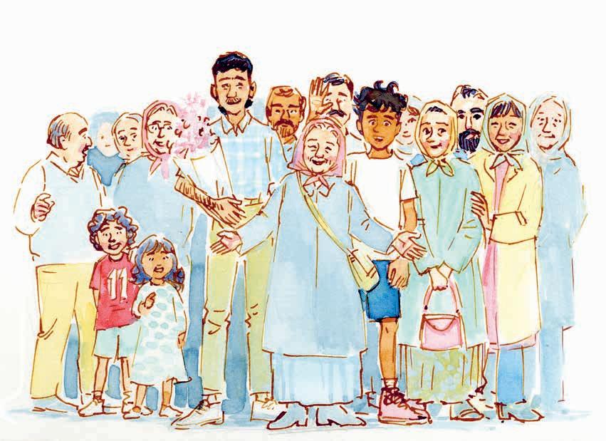 Maryam gÄr fram till mormor och gammelmoster och pussar dem.