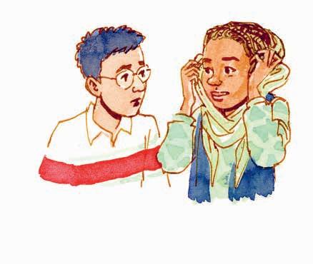 Mani och Isabell sitter pÄ andra sidan i samma rad, de delar hörlurar och lyssnar pÄ Freddie Mercury. Vem som helst kan se att de Àr kÀra i