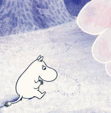 Mumintrollet kämpade vidare i den obegripliga snön. Å, vad han längtade efter solsken och