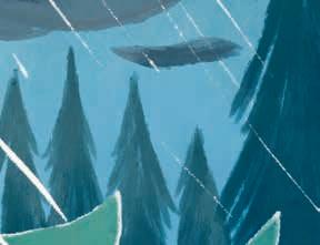 Nu kom de in i storskogens allra djupaste del. Här var träden så höga och stod så tätt att det inte gick att se himlen. Här växte jätteblommor som lyste med ett eget ljus likt ämtande lampor.