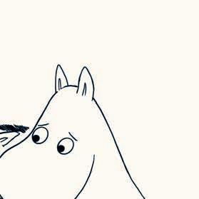 Mumintrollet hälsade artigt, men hästen rörde sig inte. Då såg han att hästen var gjord av snö.