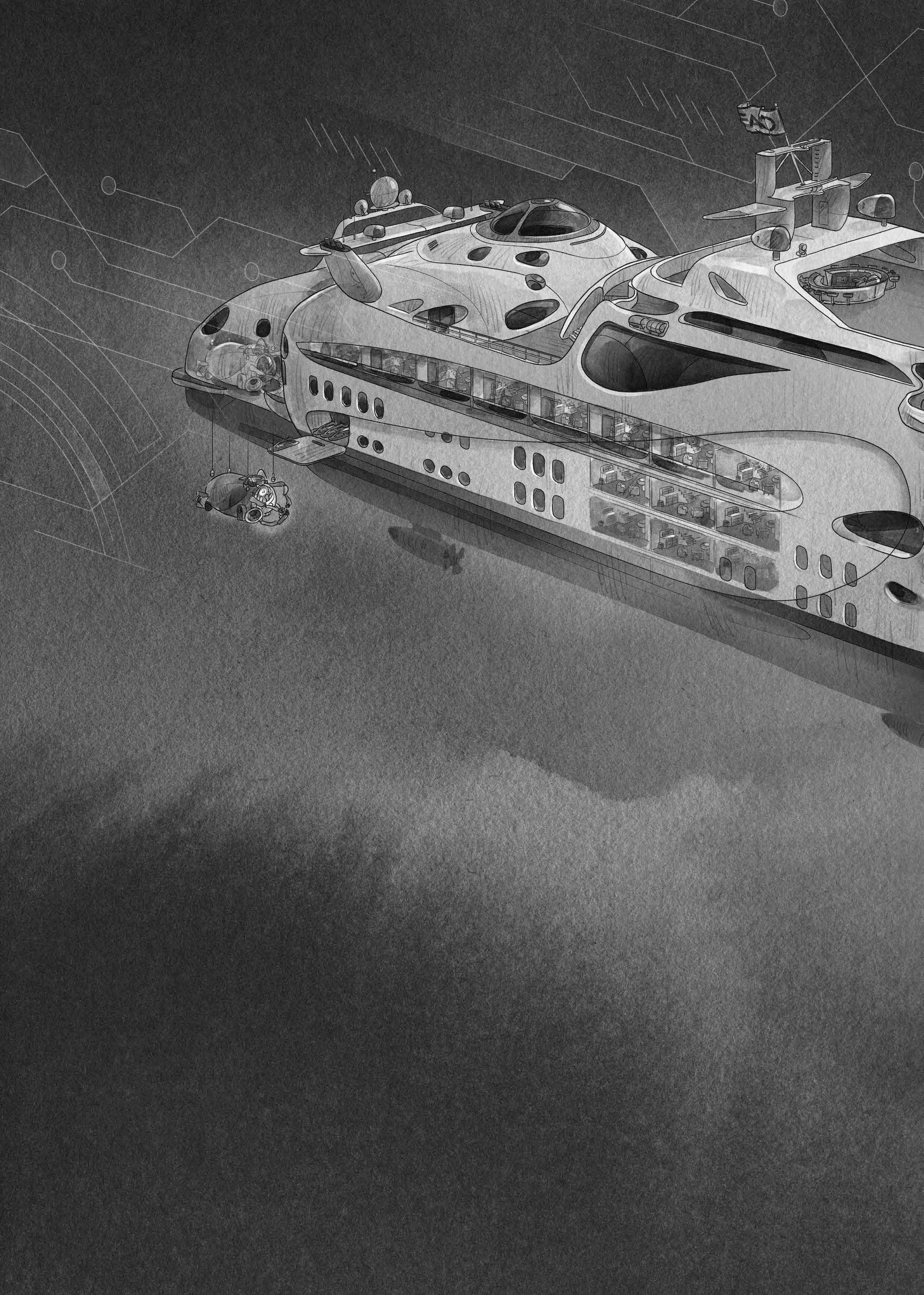 Om globen inte hade skadats när Lani plockade isär den hade den garanterat tagit skada av färden med postdrönare från Hawaii. Cruz petade varligt på den skumplastliknande kolfiberbollen tills förseglingen gick upp och han kunde öppna den. Befriad från sin kokong såg den handflatsstora silvergloben ut att vara oskadd. Fast det skulle Cruz inte veta säkert förrän han rörde vid den och hologramvideon med hans mamma och honom själv som litet barn på stranden dök upp. Samtidigt som han nynnade ”Here comes the sun” ställde han globen på nattduksbordet, mellan lådan med några av hans mammas saker och Mell, hans e gen bidrönare. Cruz tvekade. Det här var nog inte rätt tillfälle att ta reda på om videoinspelningen var förstörd. Om den var det skulle Lani säga att det var ett dåligt omen, ett tecken på att resan med Orion var dödsdömd. Cruz var inte skrockfull men han kunde ändå inte riktigt förmå sig att trumma på globen med fingret. Hans kompis Sailor York, som var med i samma team som han, såg sig omkring i Cruz hytt. ”Ni fick ett hörnrum igen. Coolt! Bryndis och jag bor i andra änden av korridoren. Är inte hytterna som att man ser dubbelt?”