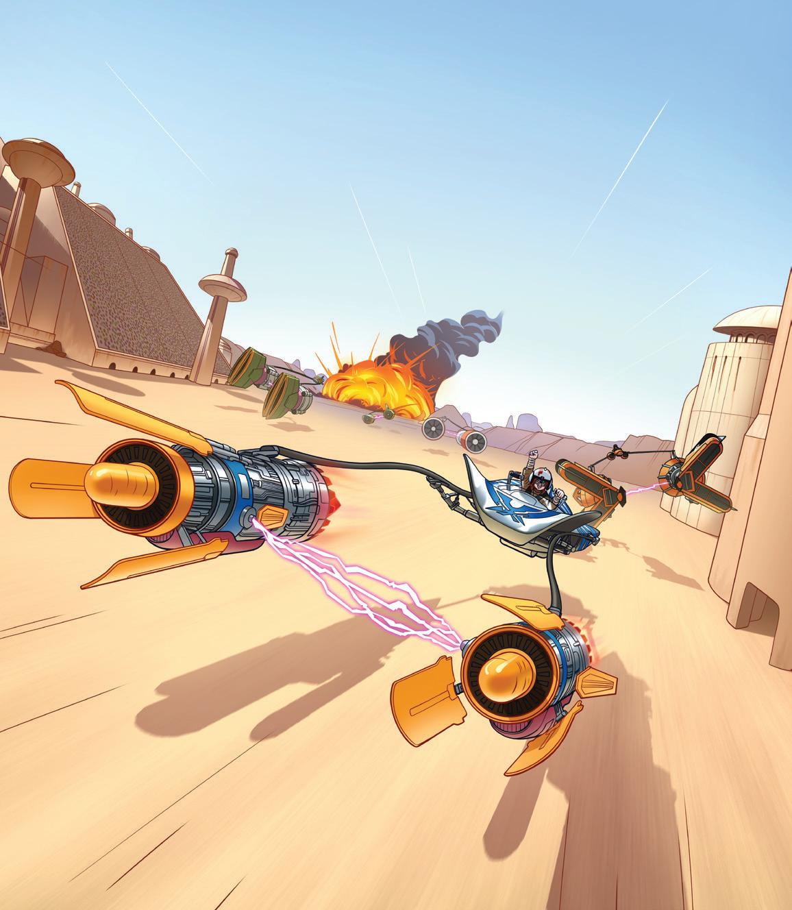 Anakin Skywalker vet hur han kan hjälpa Qui-Gon och Padmé. Han tävlar i ett podrace och vinner! Anakin ger prispengarna till Qui-Gon så att de kan reparera skeppet och fortsätta uppdraget. Qui-Gon känner att Anakin har en stark koppling till Kraften och vill att pojken följer med honom för att tränas till jedi.