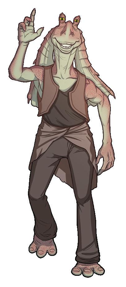 Jar Jar Binks är en gungan som hjälper Qui-Gon och Obi-Wan att gömma sig från Handelsfederationen.