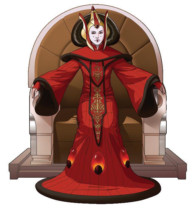 Drottning Amidala är Naboos ledare. Hon vill att Handelsfederationen lämnar hennes planet i fred och tänker kämpa för att beskydda sitt folk. Qui-Gon och Obi-Wan räddar drottning Amidala från Nute Gunray och hans stridsdroider.