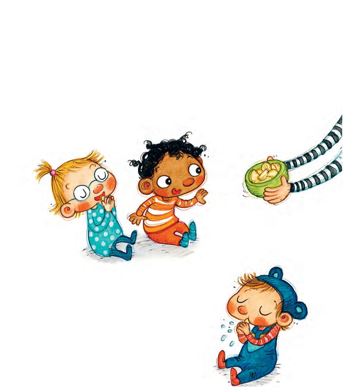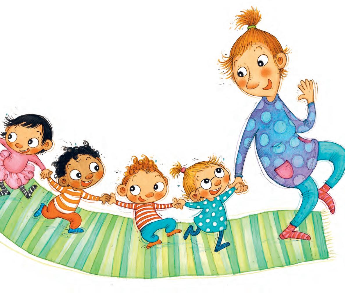 Barnen samlas på mjuka mattan.