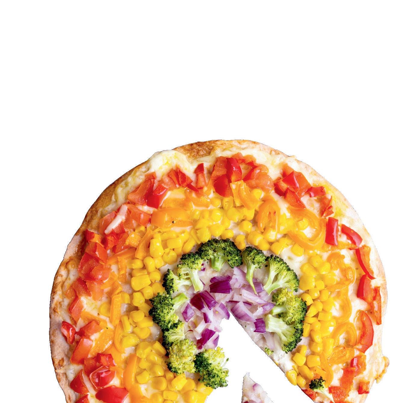 Andra färgglada pizzatoppings: ananas tomat spenat