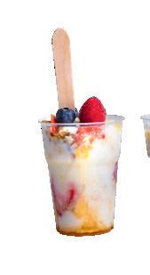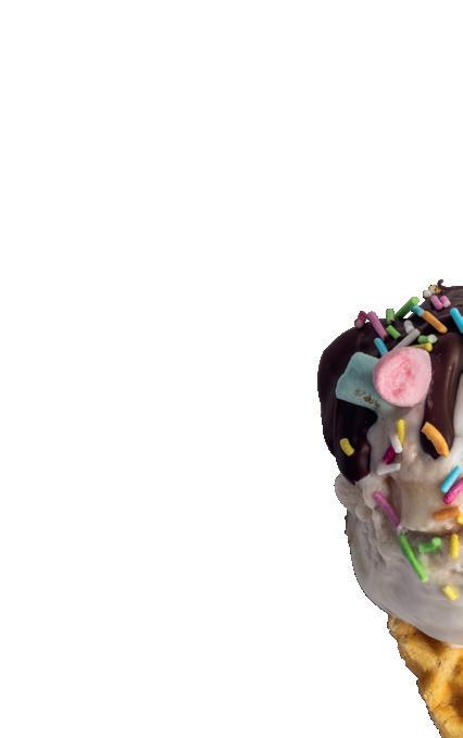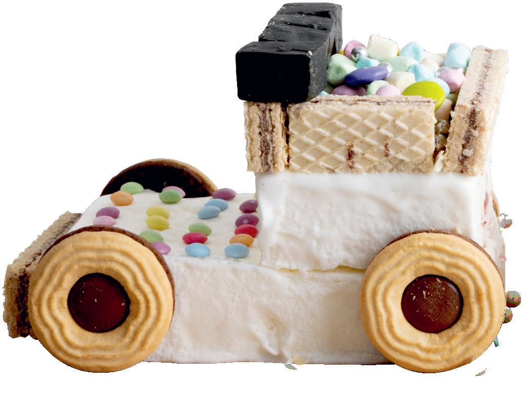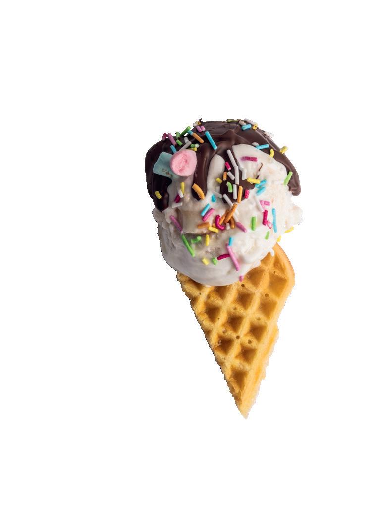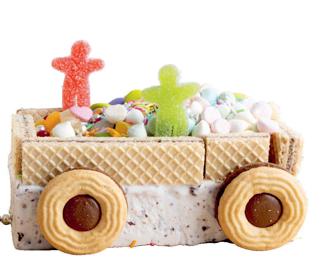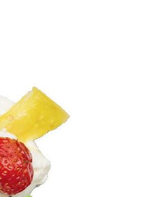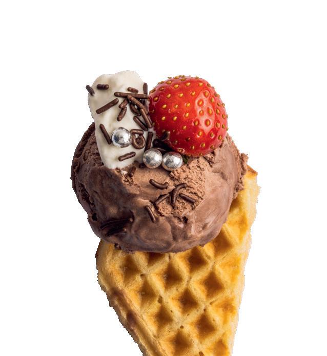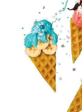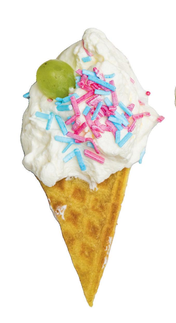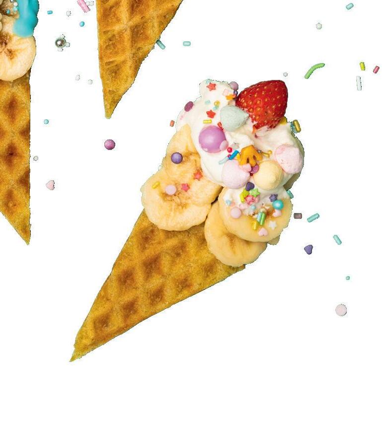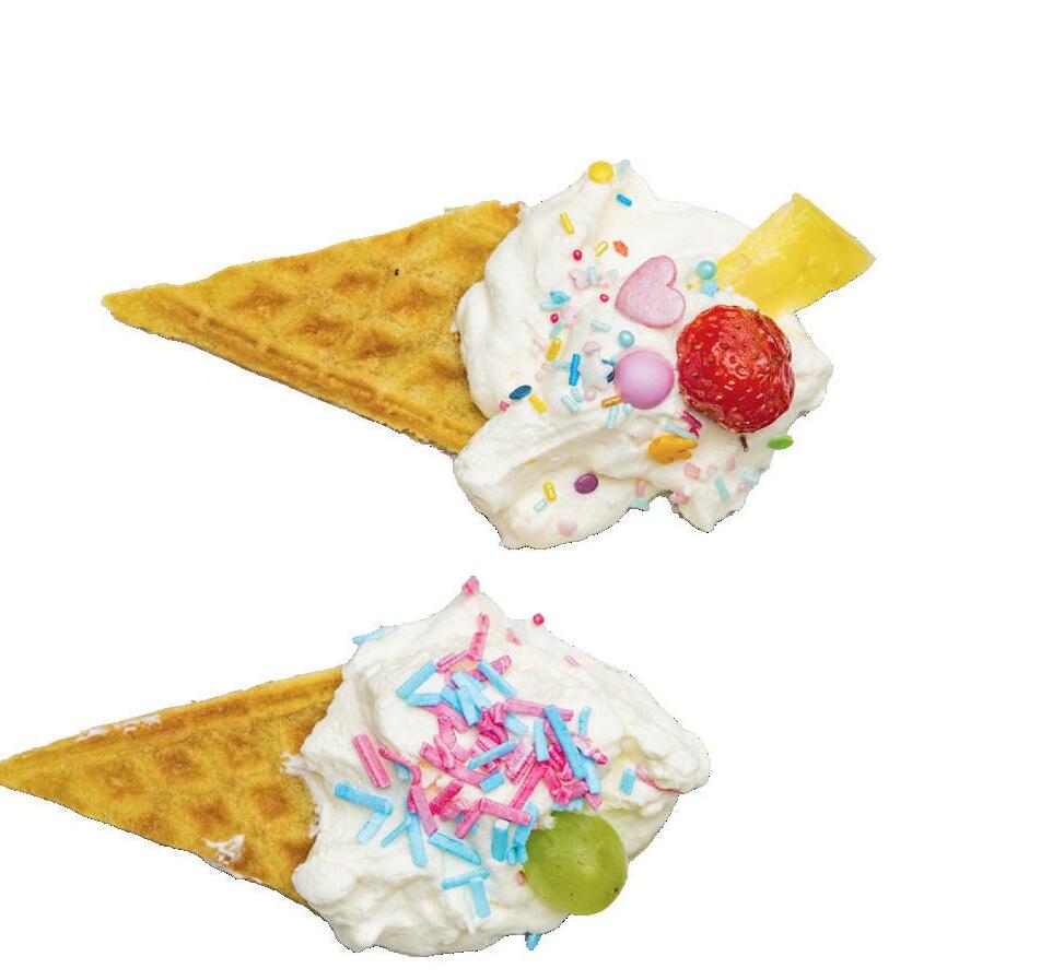 2 Lägg struten på en tallrik och toppa med en kula glass. Dekorera med allt du tycker en smarrig glass ska innehålla.