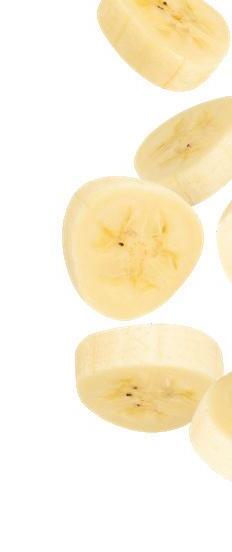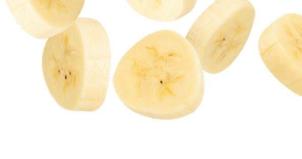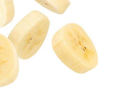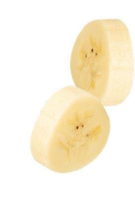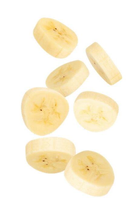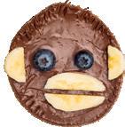 Skär 2 bananskivor. En delar du till öron och en till munnen. Du får en avlång bananskiva om du skär på snedden.
