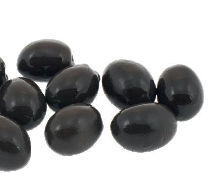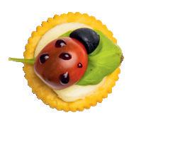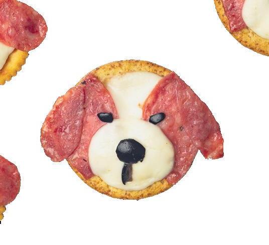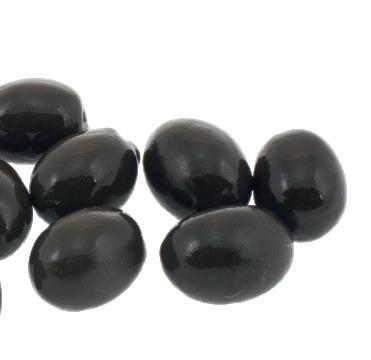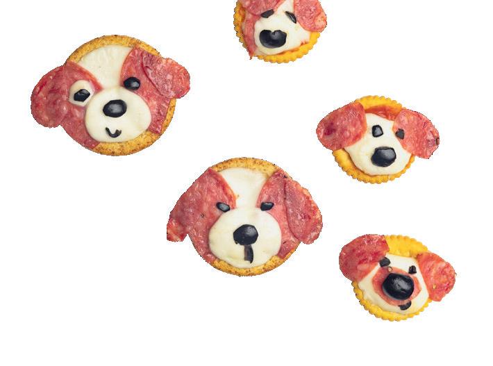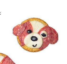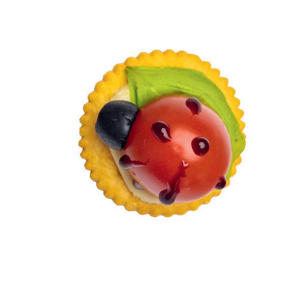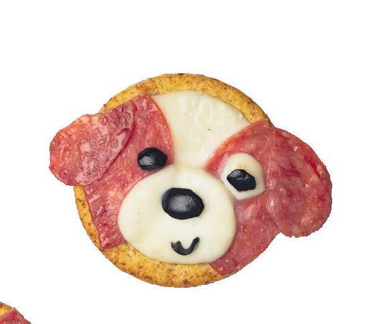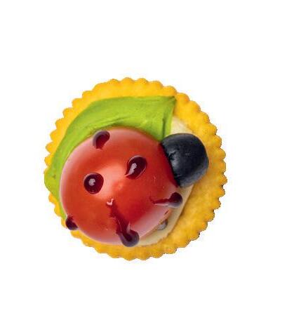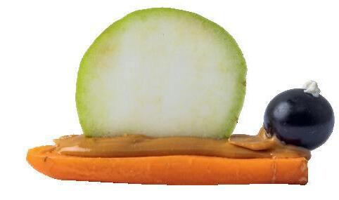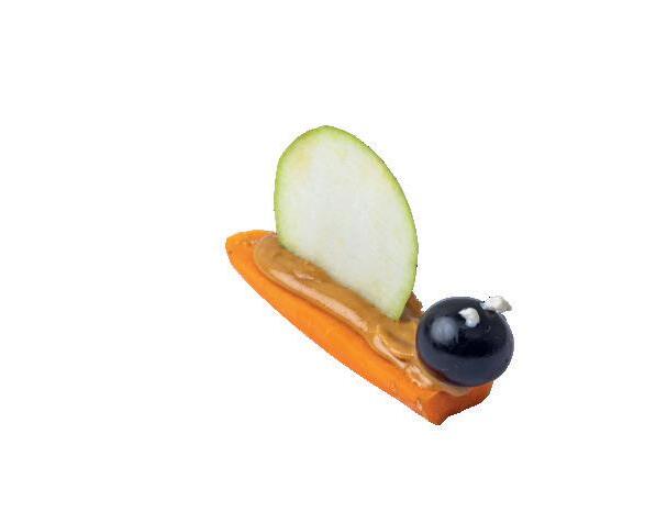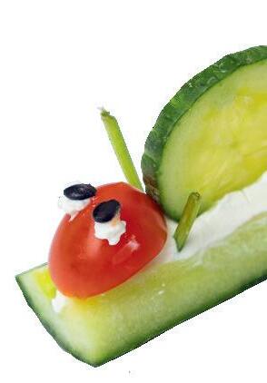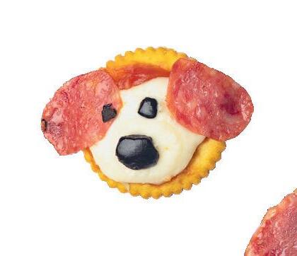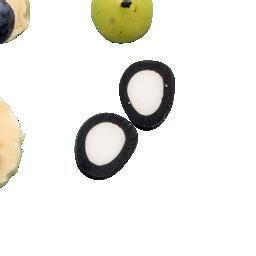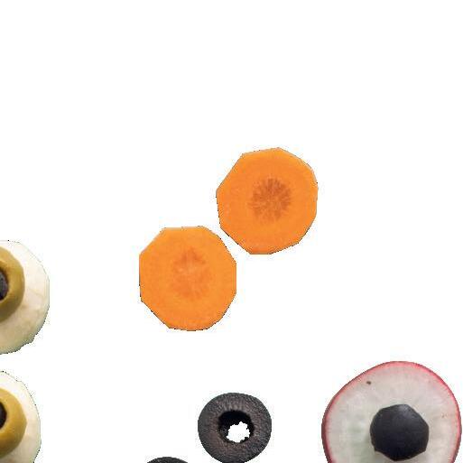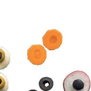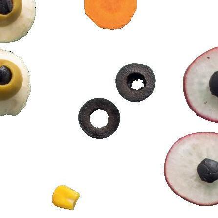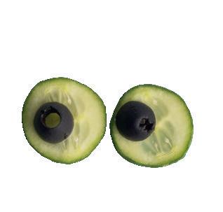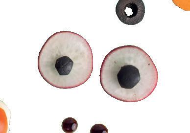 2 Dela en svart oliv så får du två ögon. Lägg med platta sidan nedåt.