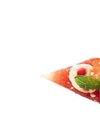 1 Skär stadiga skivor av vattenmelonen, sen är det bara att dekorera med hackad frukt som du gillar.
