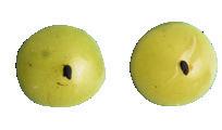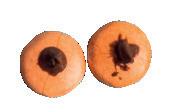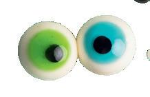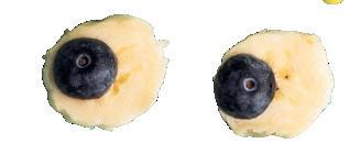 Lägg en halv vindruva på en bananskiva så får du en pupill.