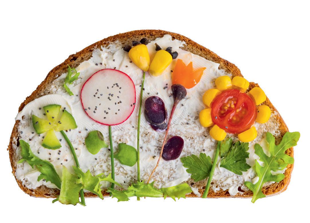 Ta gärna en bred brödskiva så du får plats med din blomsteräng.