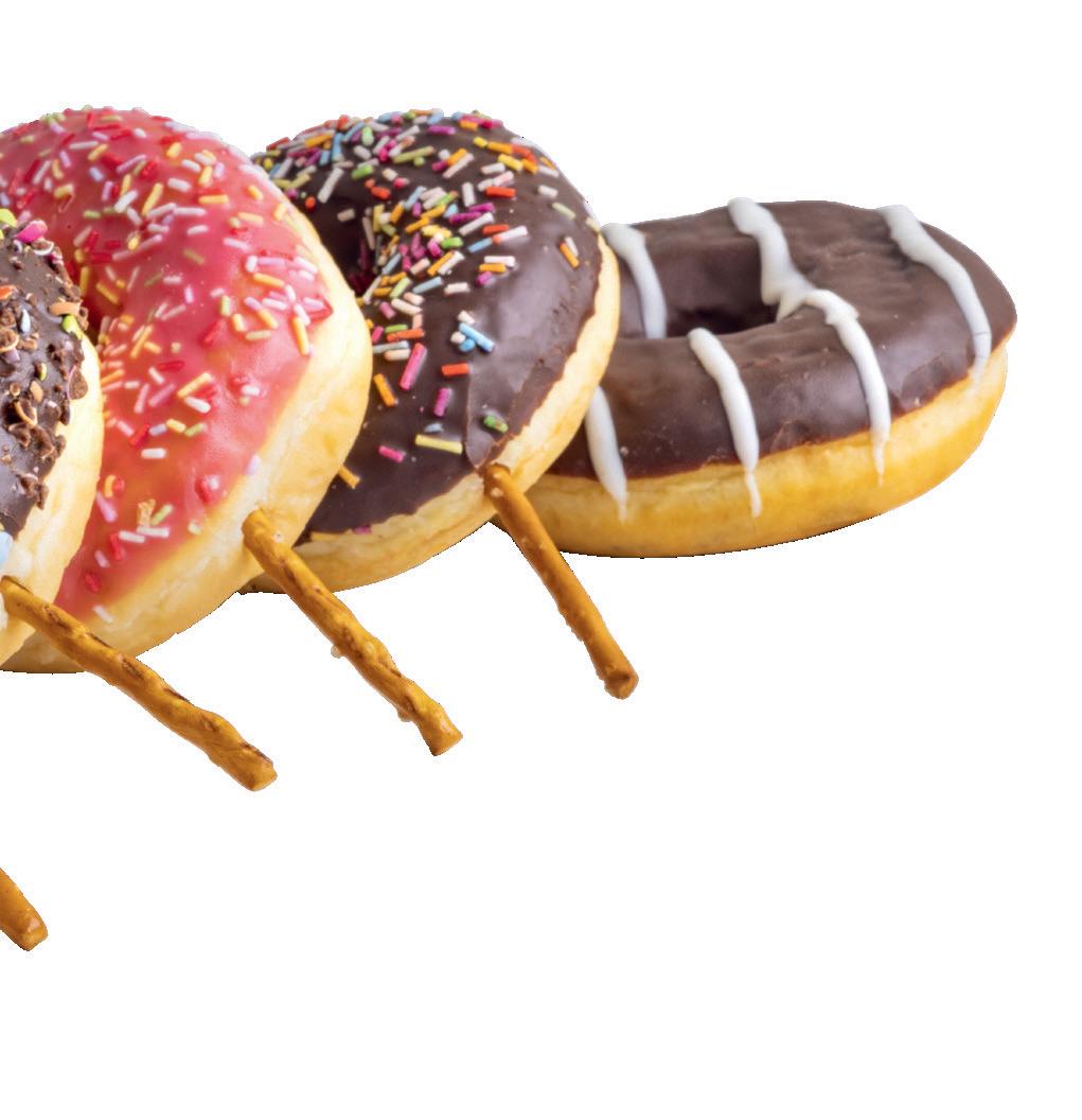 Använd sånt som blivit över! En donut räcker inte till alla - dela den i munsbitsstorlek.