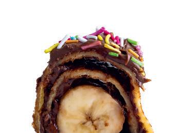2 Lägg gärna på lite mynta eller basilika som krydda och strössla över kokosflingor eller riven vit choklad som “ost”. Ringla på honung eller lime.